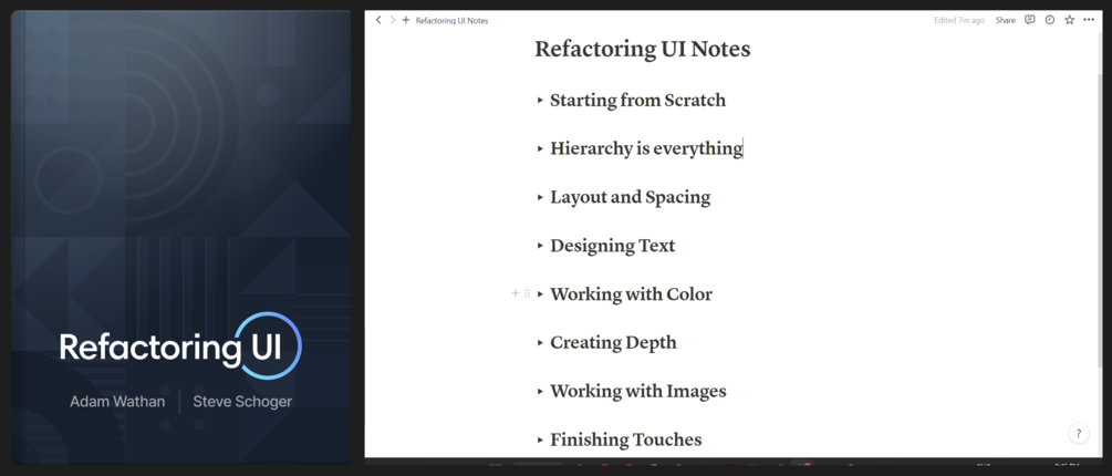 A notion file with short notes of Refactoring UI book with every chapter included